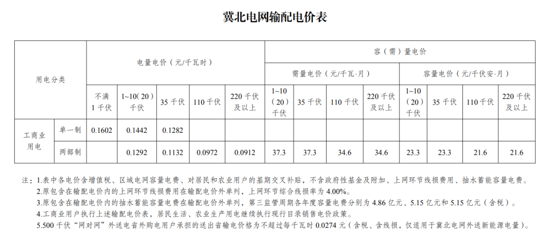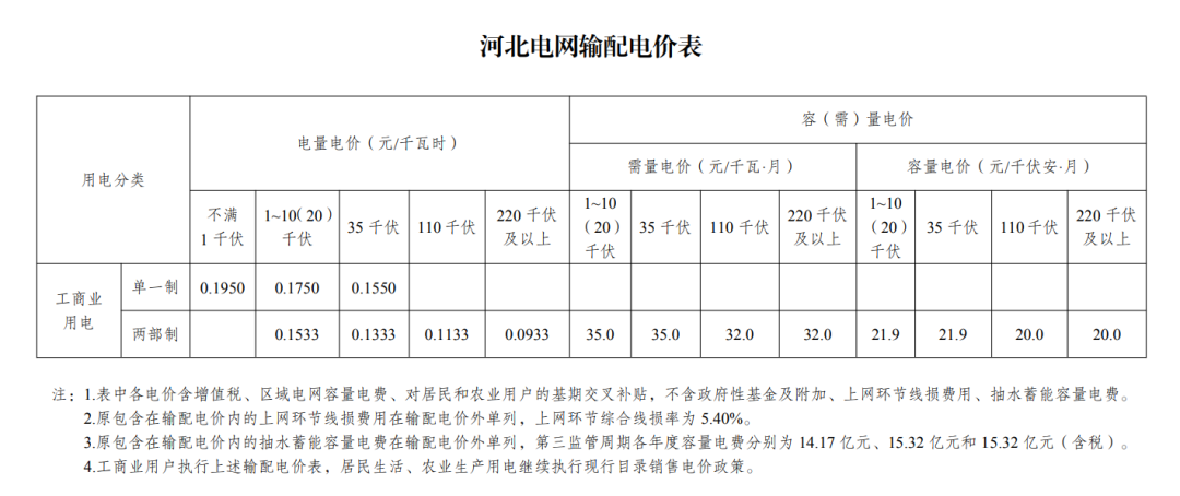 附件:京津冀省級電網(wǎng)輸配電價表